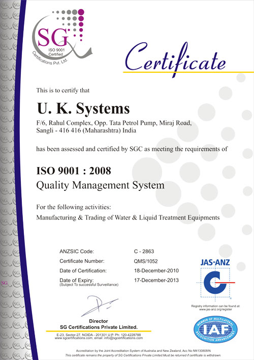 We are an ISO 9001:2008 certified organization and hence, our utmost priority lies in delivering optimum quality Electronic Water Conditioner to our customers such as Nirmal Seeds, Jalgaon. Namdhari seeds, Banglore. Doctor Seeds, Rajkot. Katare Spinning mill, Solapur. Sangola Spinning mill, Solapur. Venkatesh Paper Mill, Nagpur. Sarjan Biotech, Bhuj. City Tiles Ltd., Ahemadabad. Arradhya Concrit Products, Mysore. etc.,